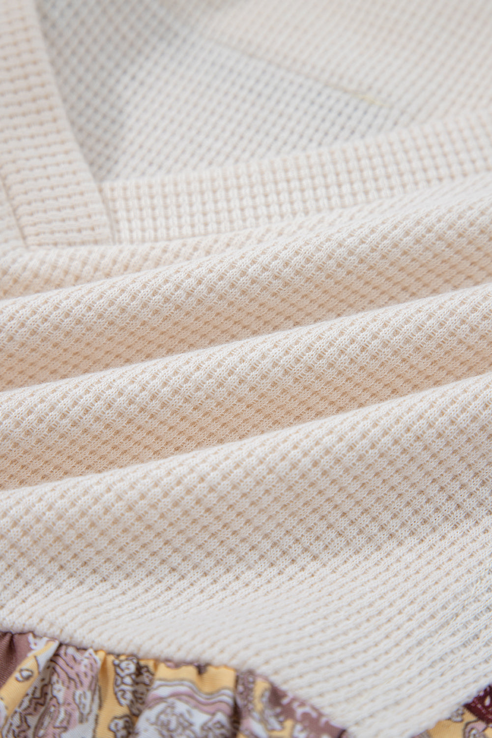 Beige Paisley Ethnic Print Contrast Patchwork Long Sleeve Loose Top
