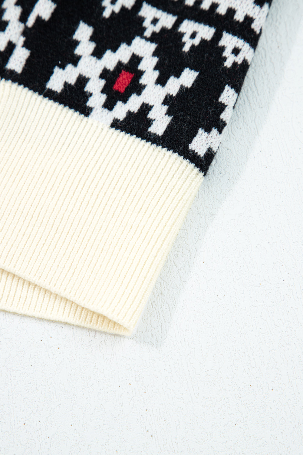 Black Floral Print Buttoned Front V Neck Knit Cardigan