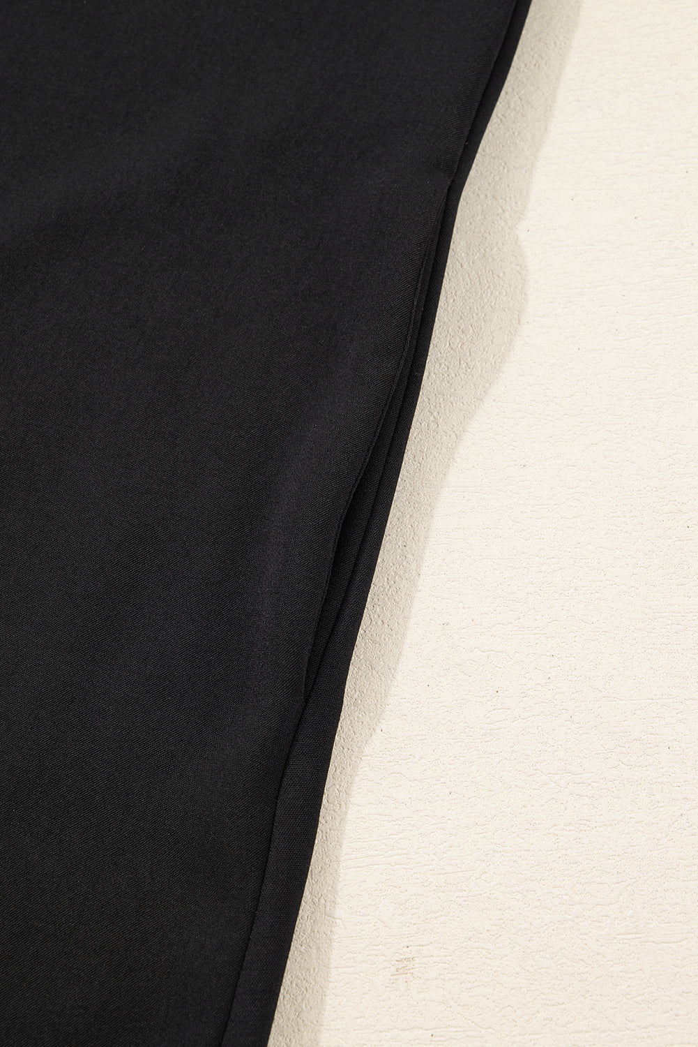 Black Plus Size Notched Neck Leopard Trim Flounce Long Sleeve Shift Dress