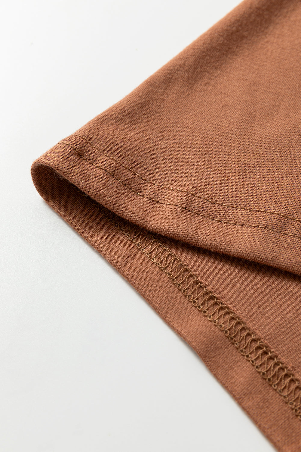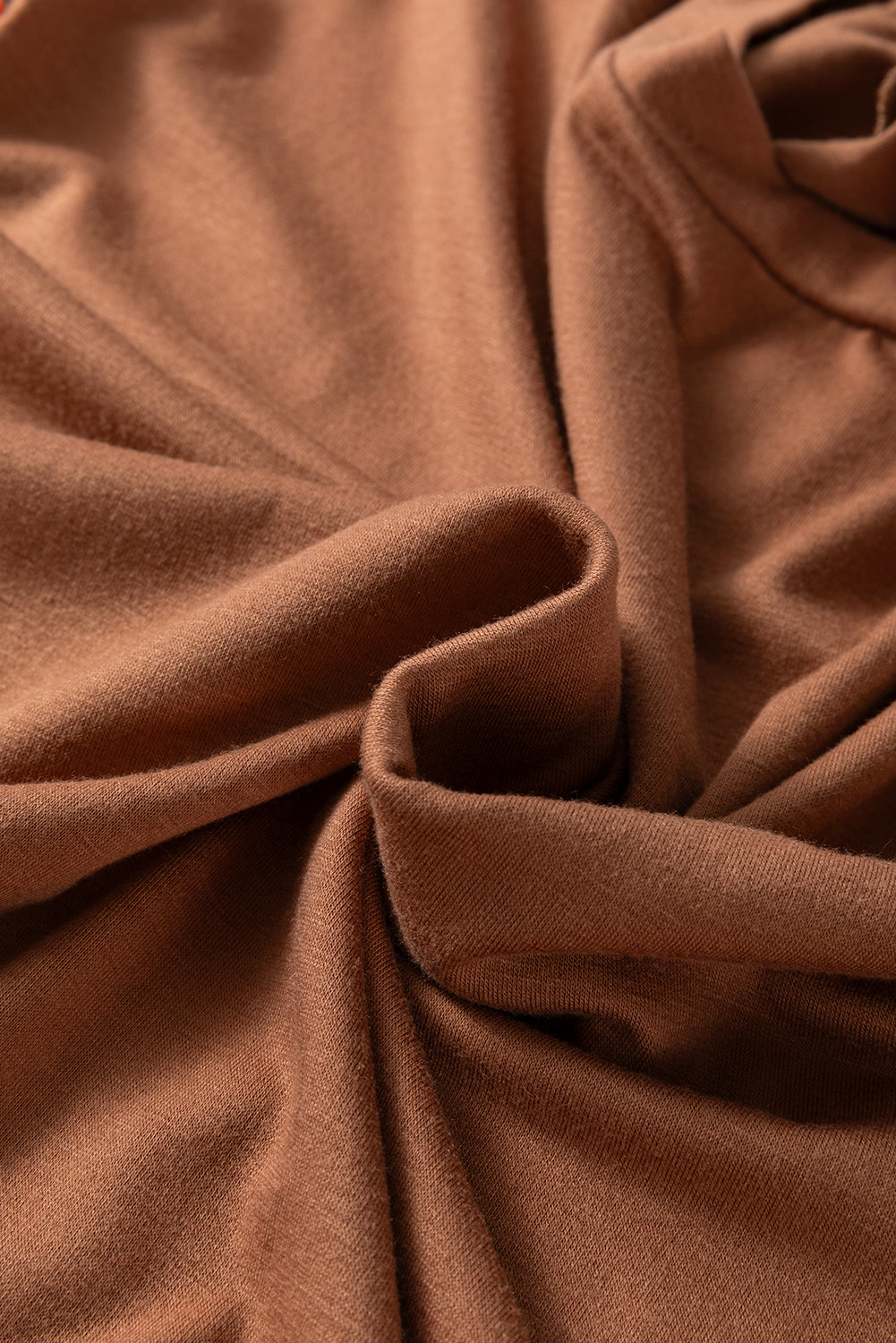 Brown Floral Sleeve Patchwork Round Neck Plus Blouse