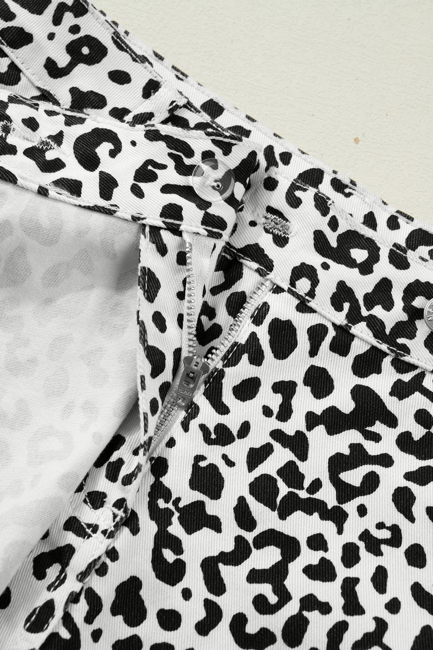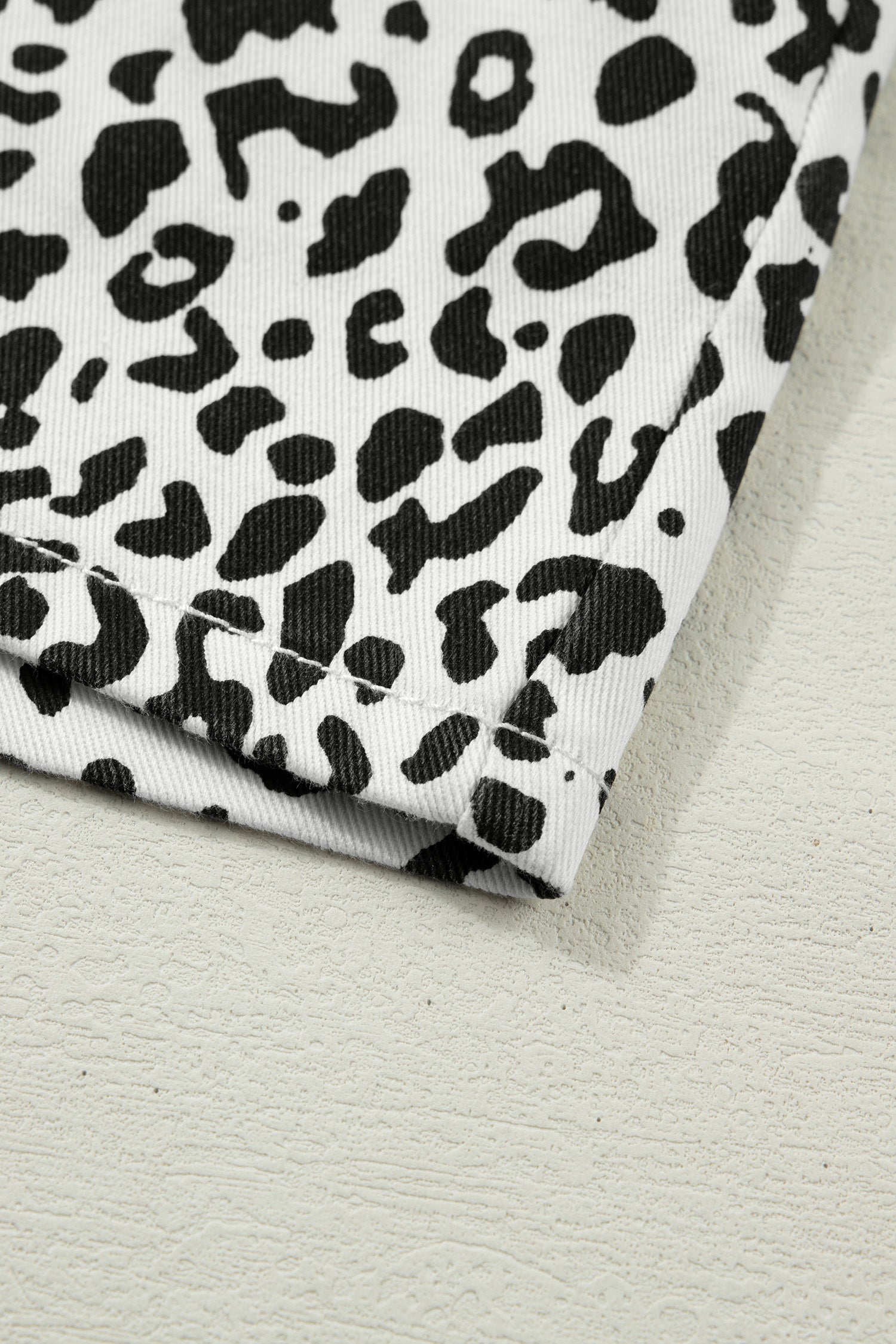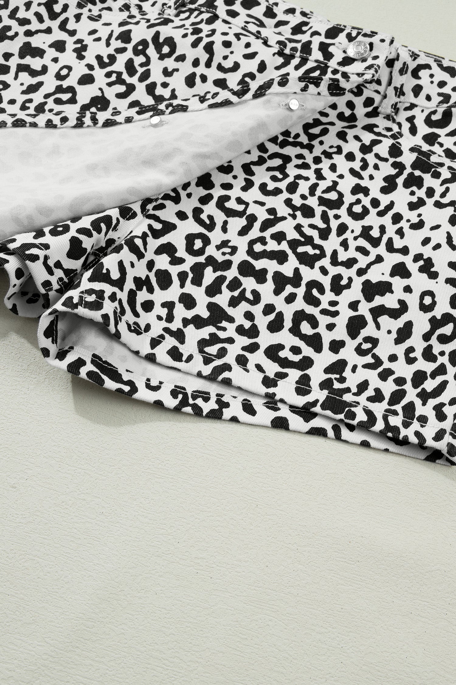 - The leopard denim shorts are wild and free.