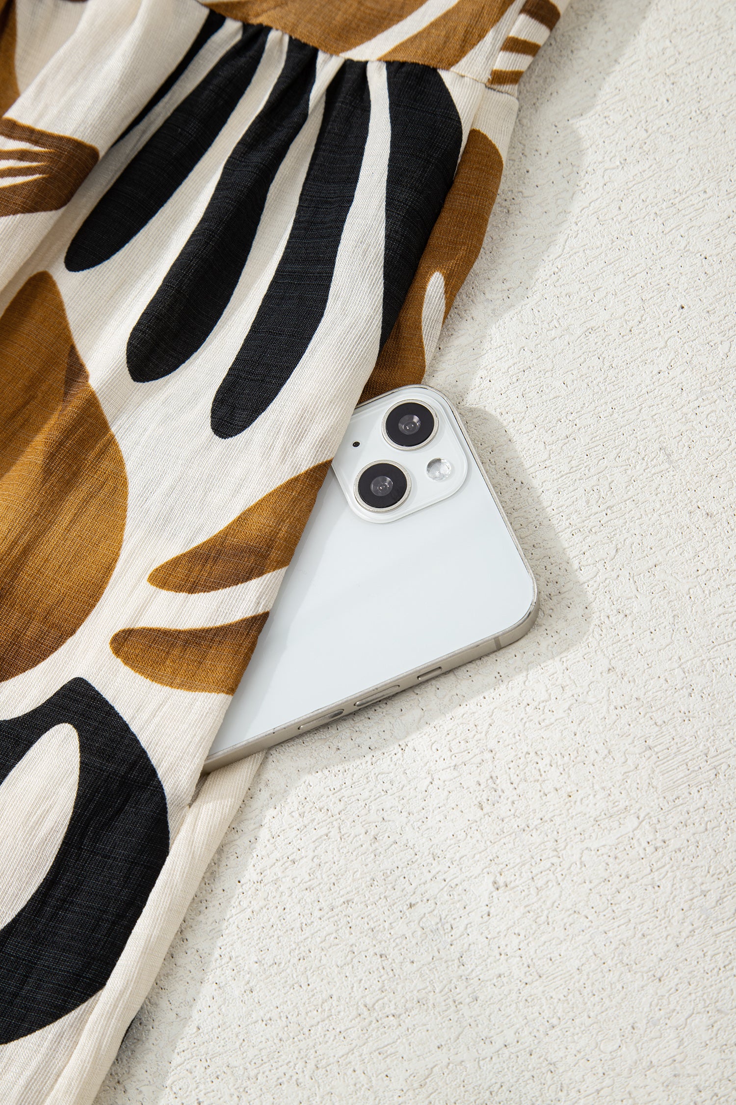 - This stunning dress features a chic patchwork floral pattern in an earth hue