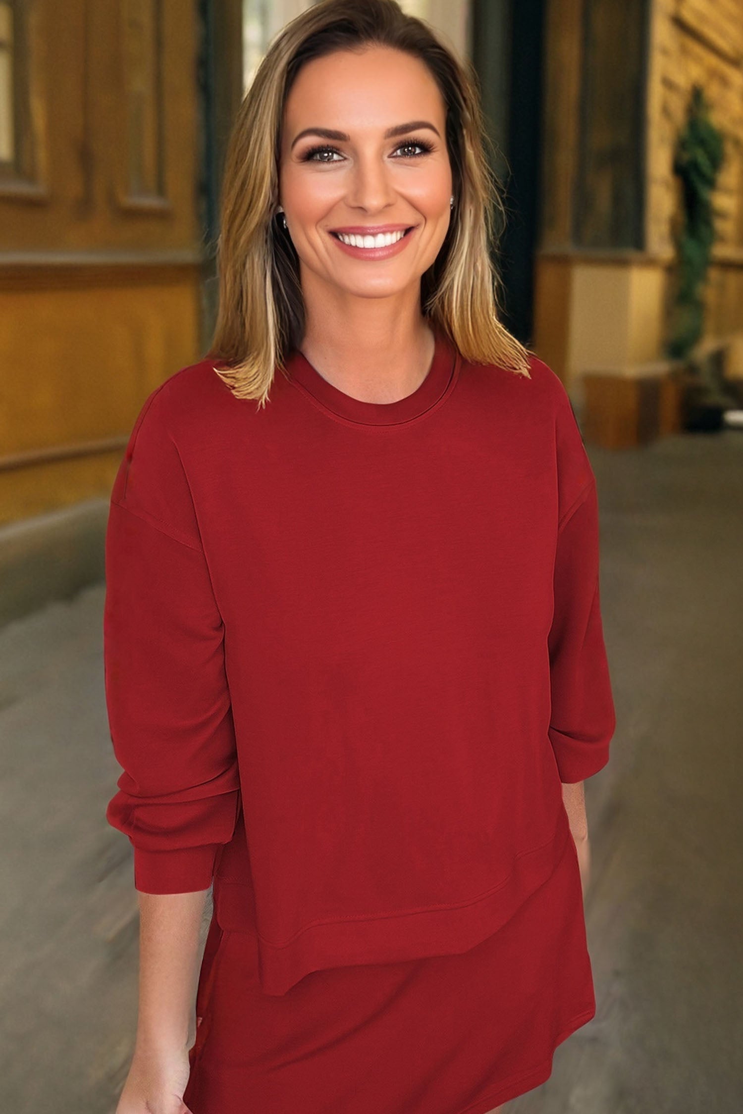 Drop shoulder pullover offers a relaxed, laid-back vibe.