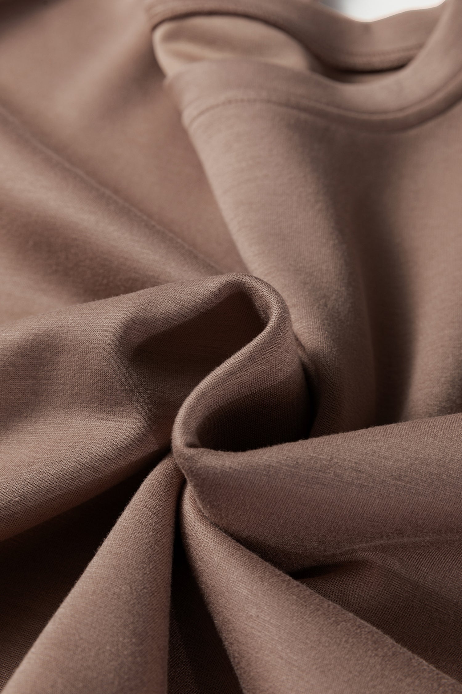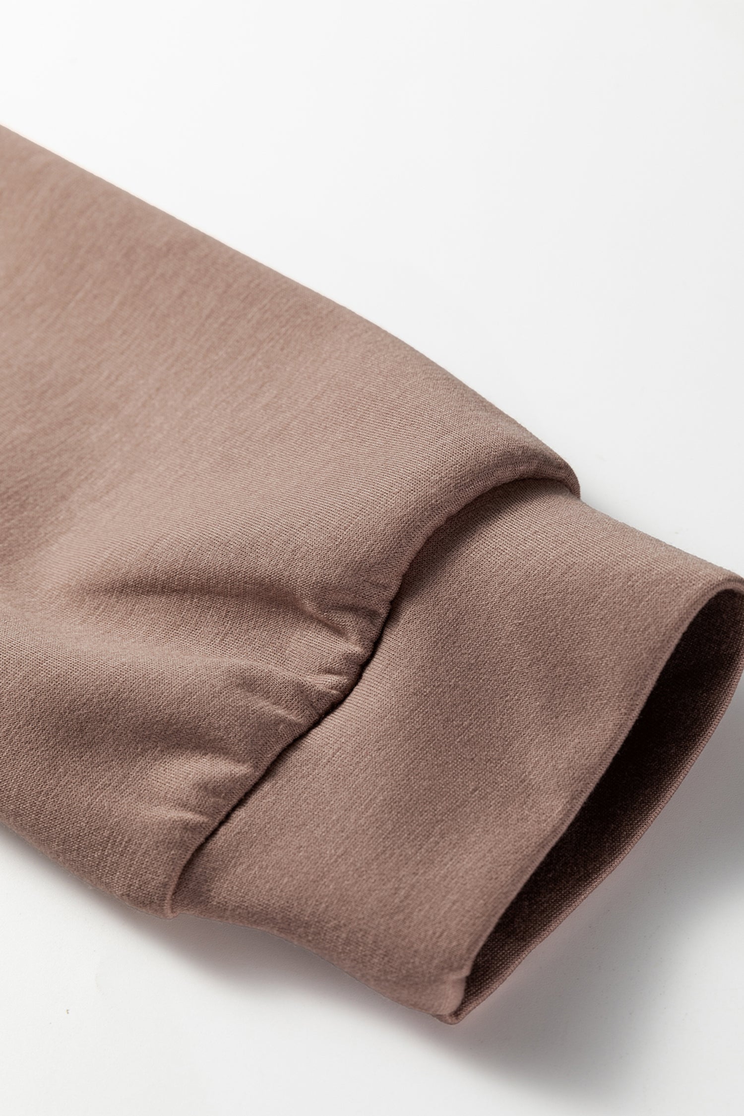 Coffee Solid Color Drop Shoulder Pullover Drawstring Mini Skirt 2pcs Outfit