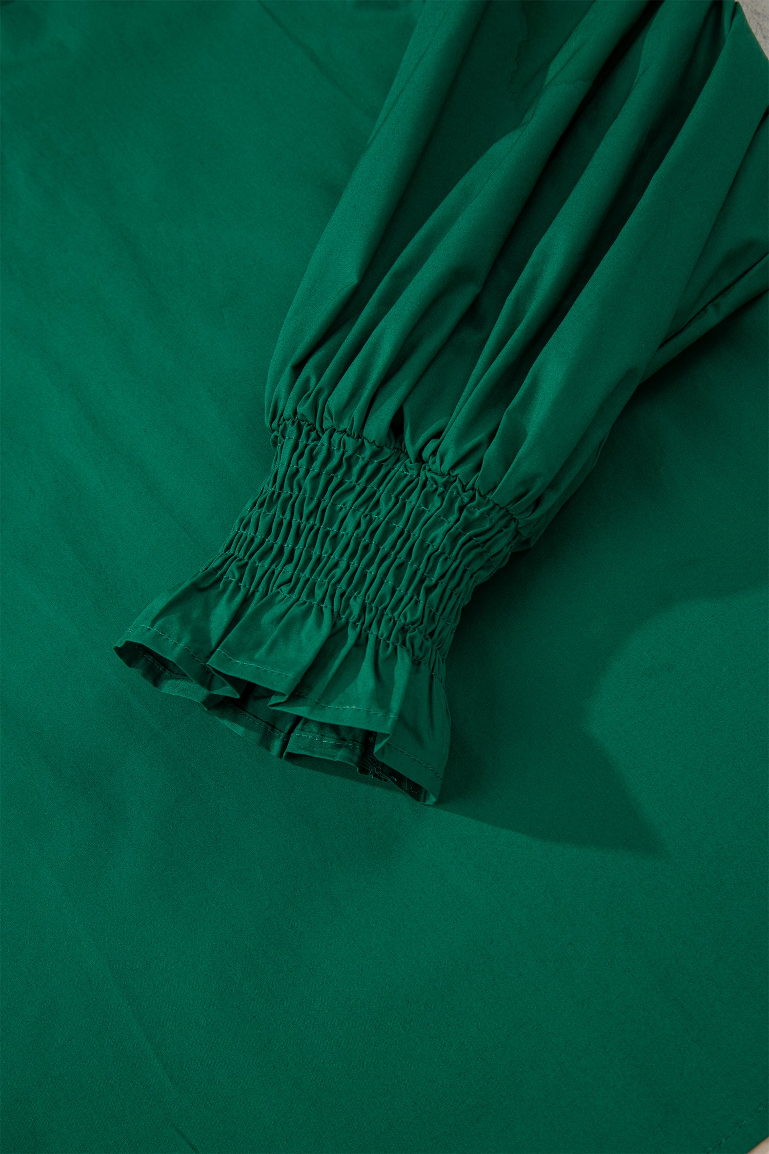 Evergreen Puffy Flounce Sleeve Leopard Trim V Neck Blouse