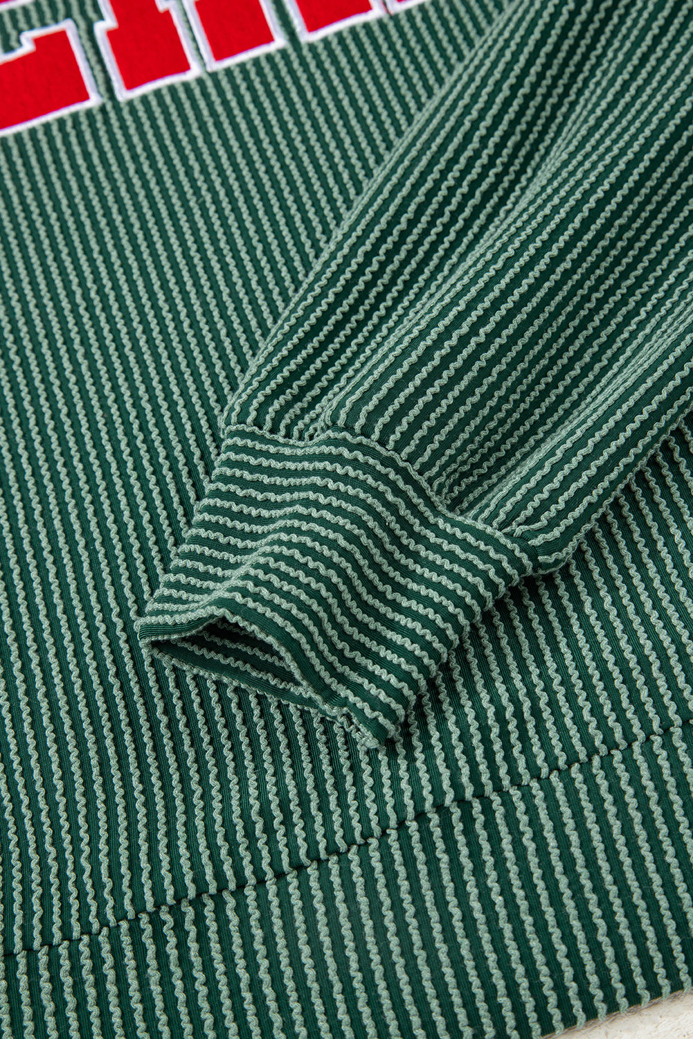 Evergreen Twisted Rib Outlined Merry Letter Graphic Loose Long Sleeve Top