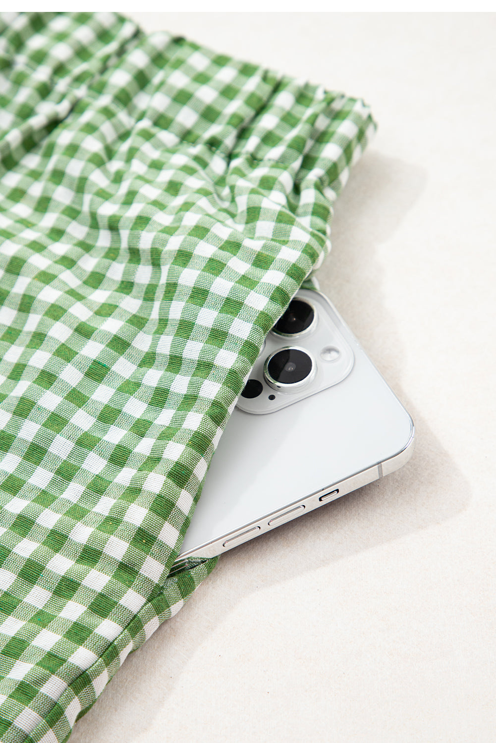 Fern Green Red Plaid Gingham Printed High Waist Shorts