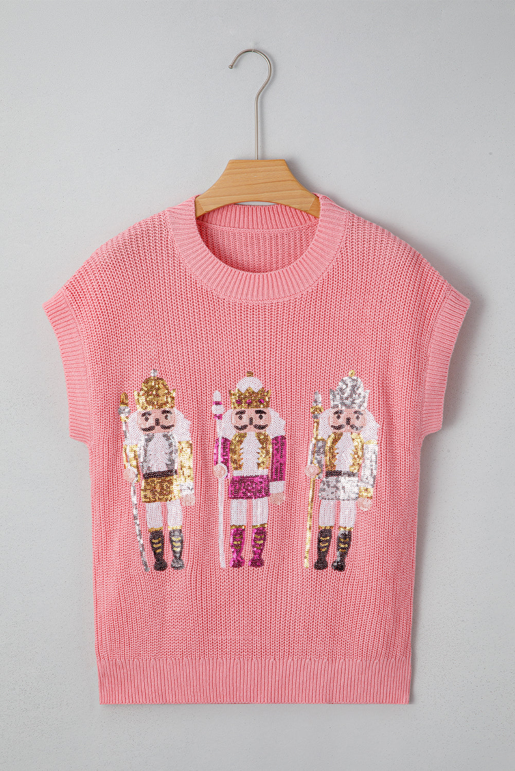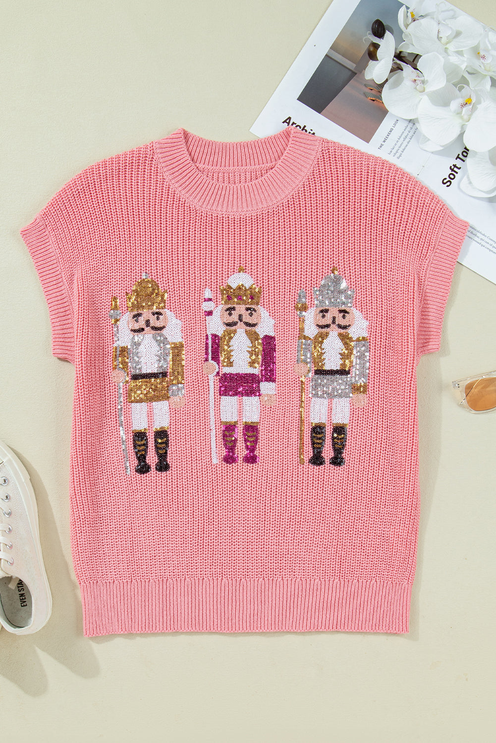 Gossamer Pink Nutcracker Cutie Sequin Graphic Short Sleeve Sweater