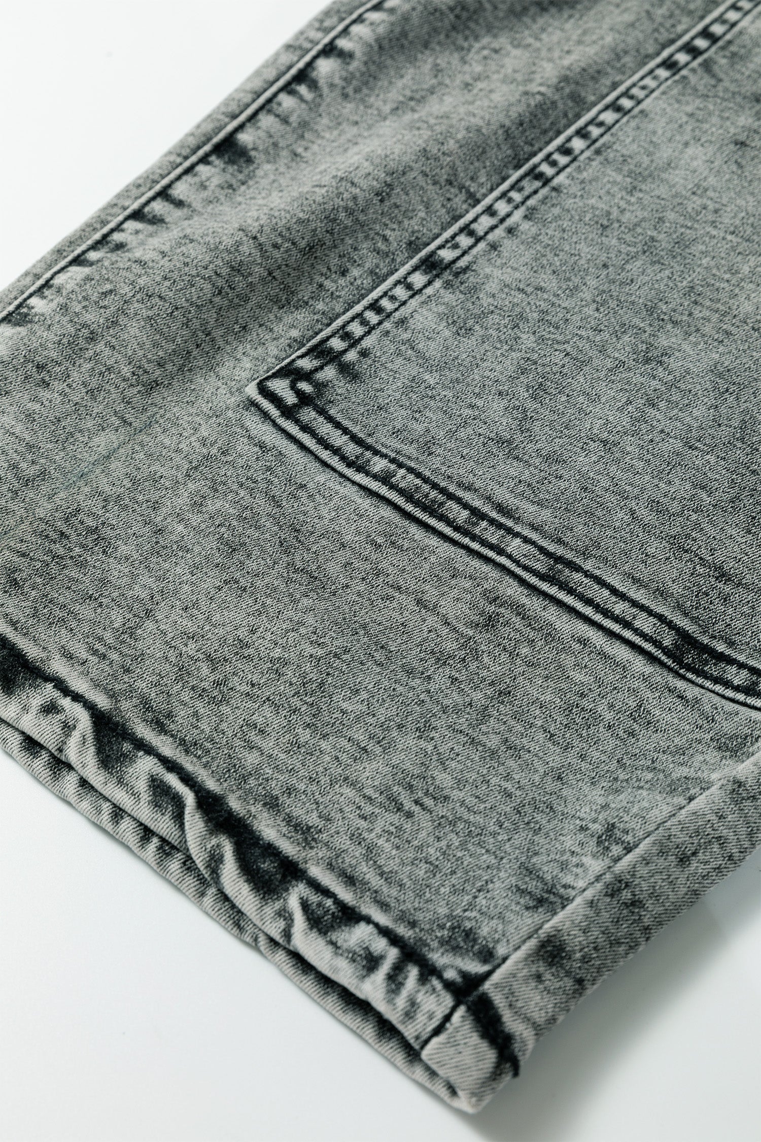 Gray Acid Wash Barrel Fit Denim Pants with Waist String