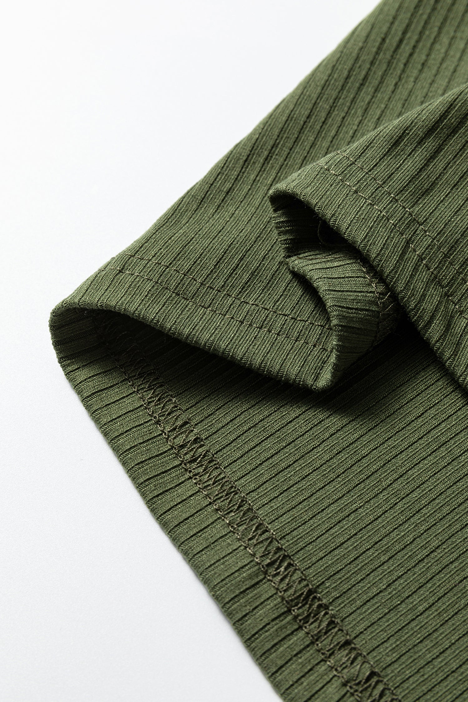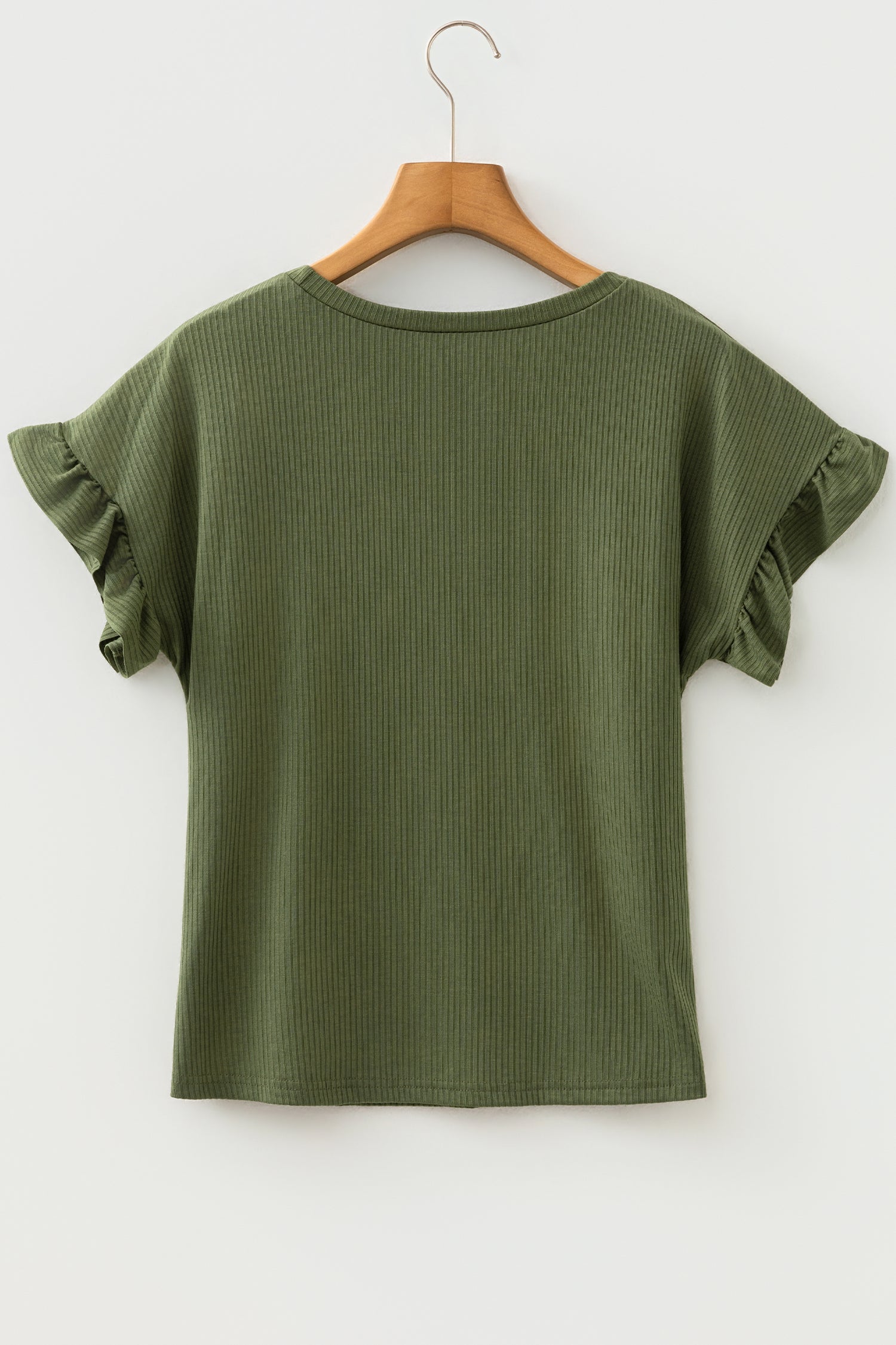 Jungle Green Solid Color Ribbed Ruffled Short Sleeve T Shirt