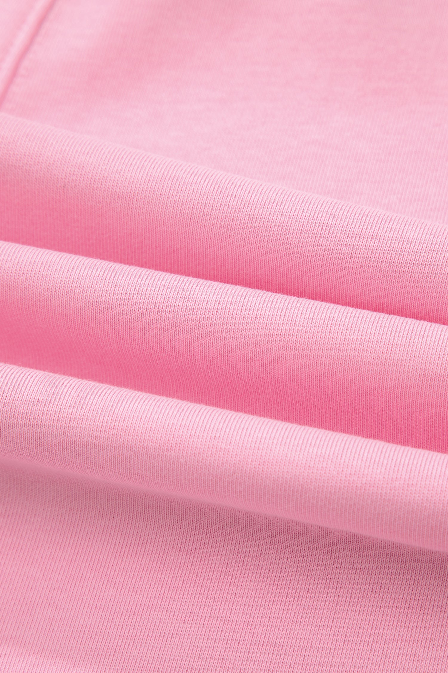 Pink Solid Color Raw Edge Half Sleeve Pocketed Loose Romper