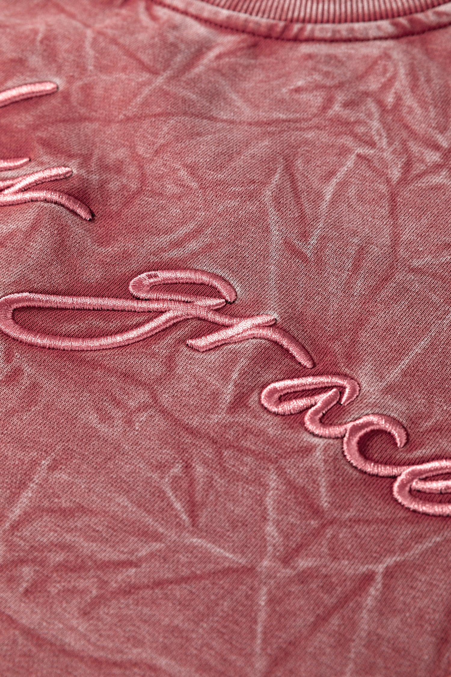 Real Teal saved by grace Letter Embroidery Mineral Wash Loose Sweatshirt