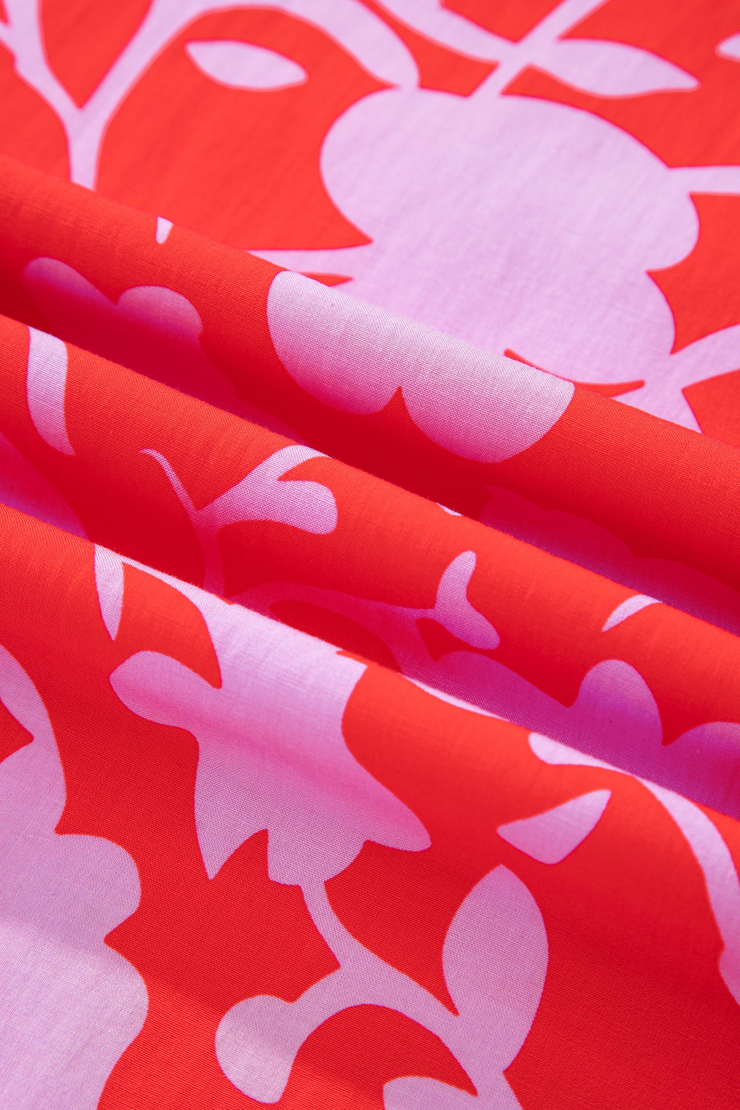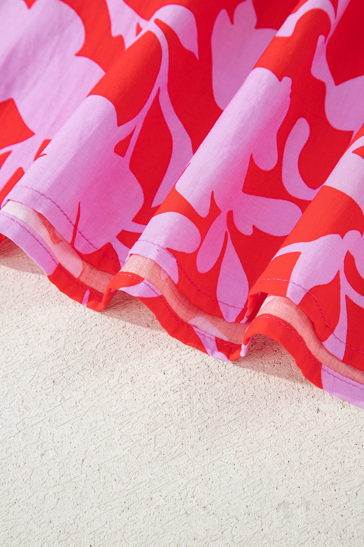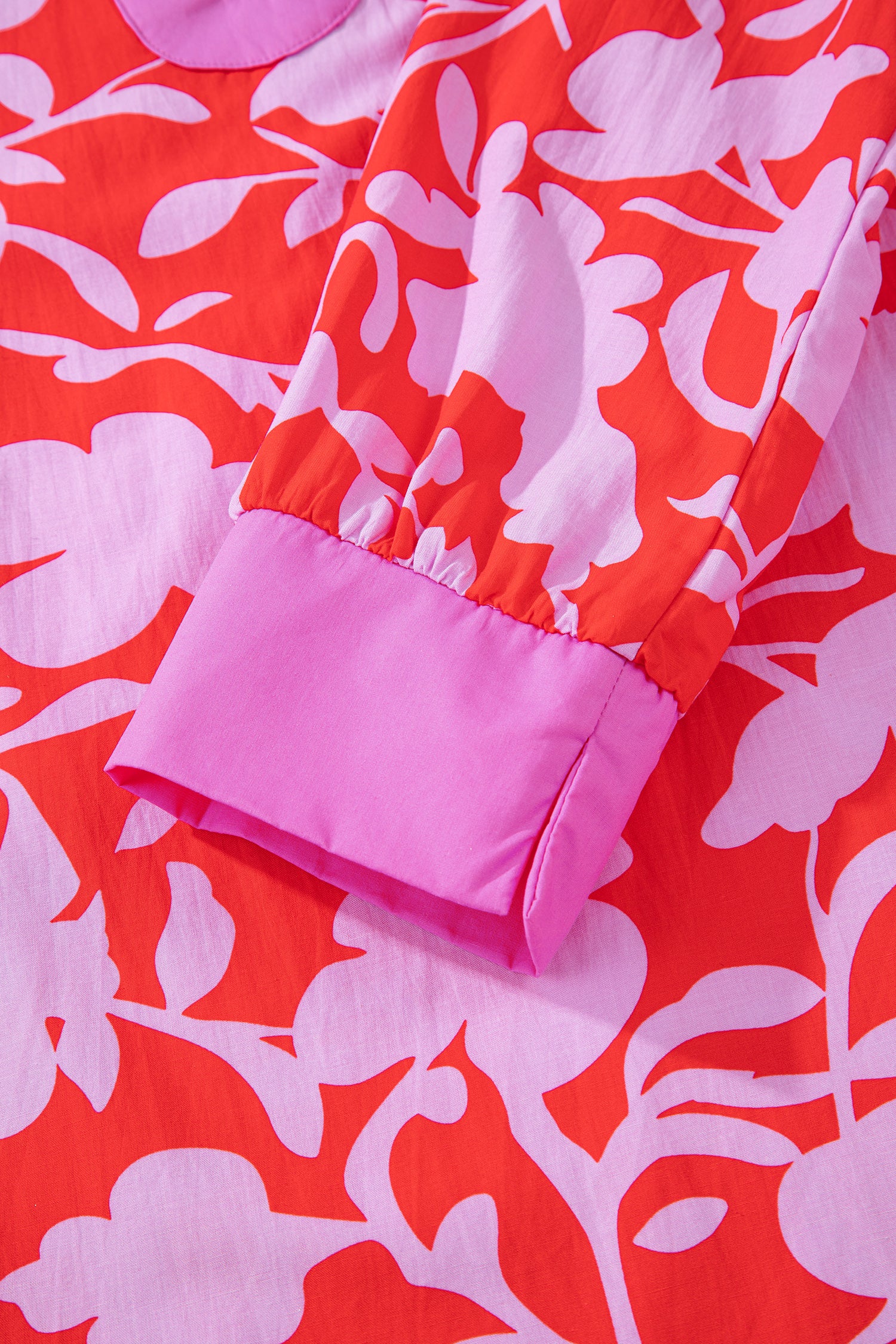 Red Floral Print Split V Neck Cuffed Bracelet Sleeve Blouse