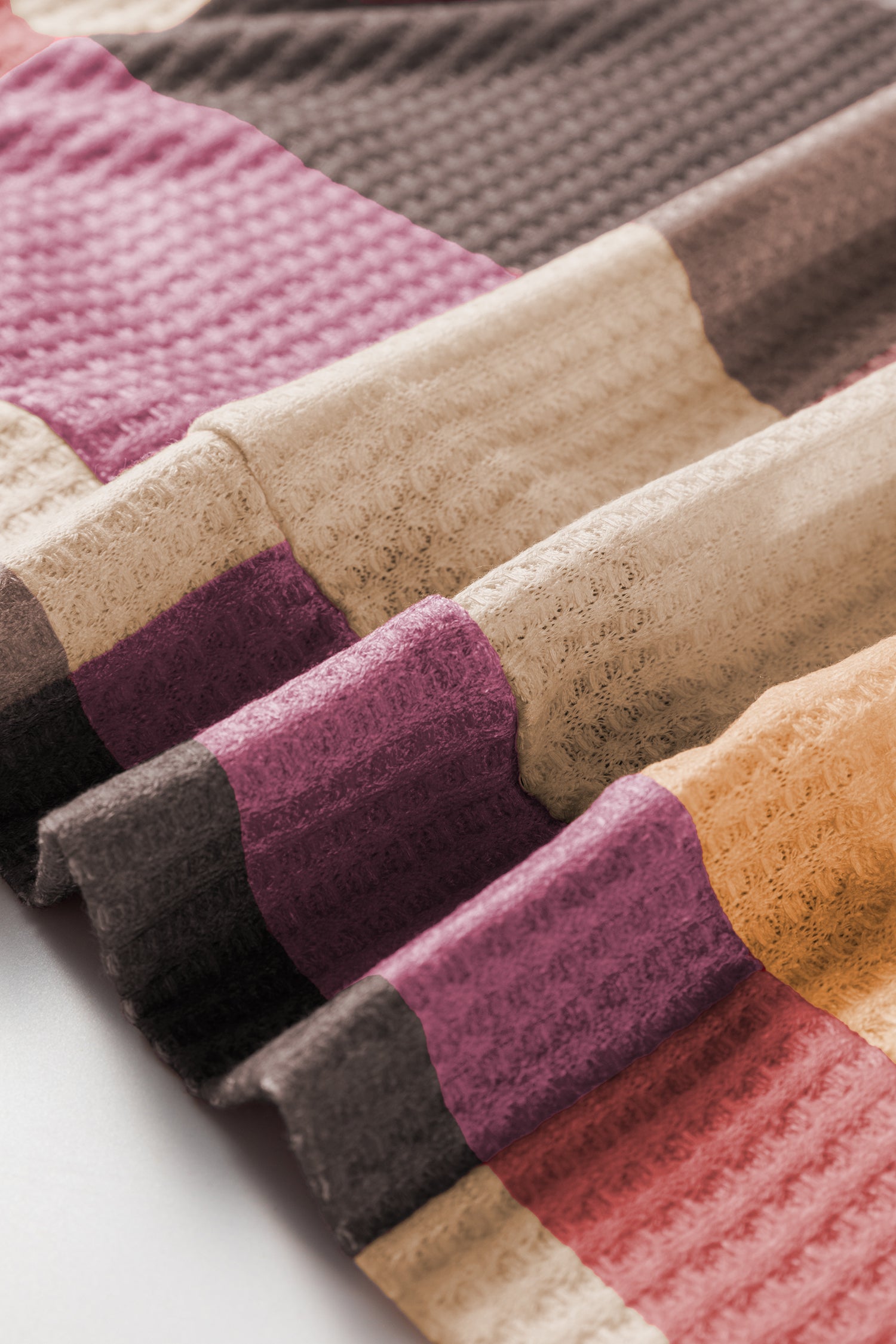 Rose Red Checkered Print Textured Knit Long Sleeve Loose Top