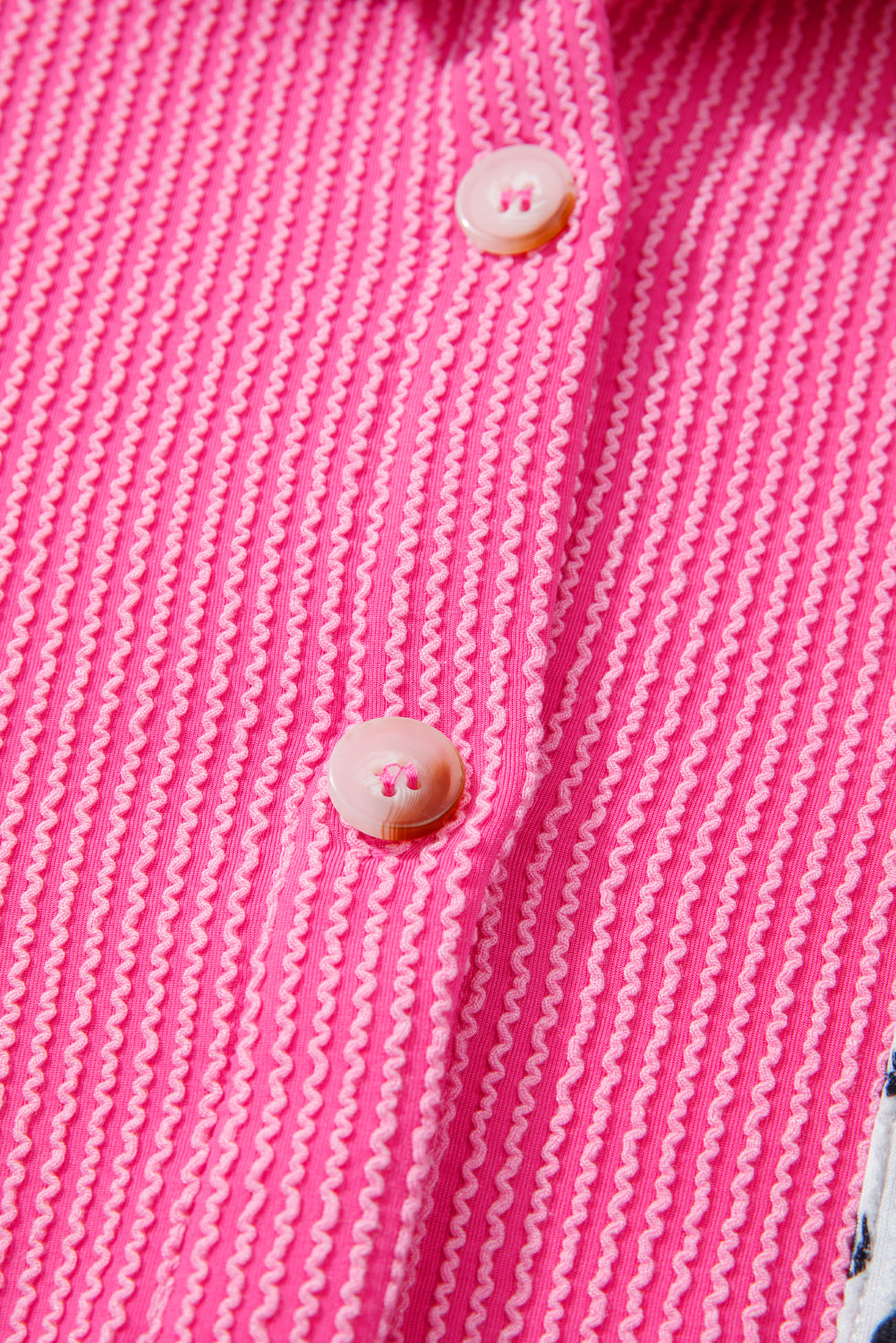 Rose Red Leopard Patched Twisted Ribbed Western Casual Shacket